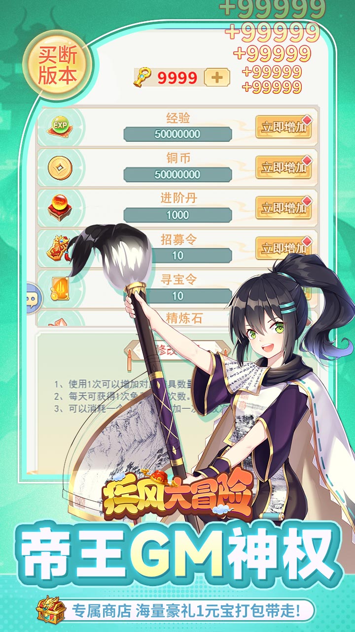 1、全新0.05折无限福利买断版,每日狂送代金券,3000元买断超级金票 2、98元买断系统道具,所有道具、材料,拉满全系统轻松畅领 3、豪华资源礼包内置拉满道具,破底折扣终极月卡连送海量代金