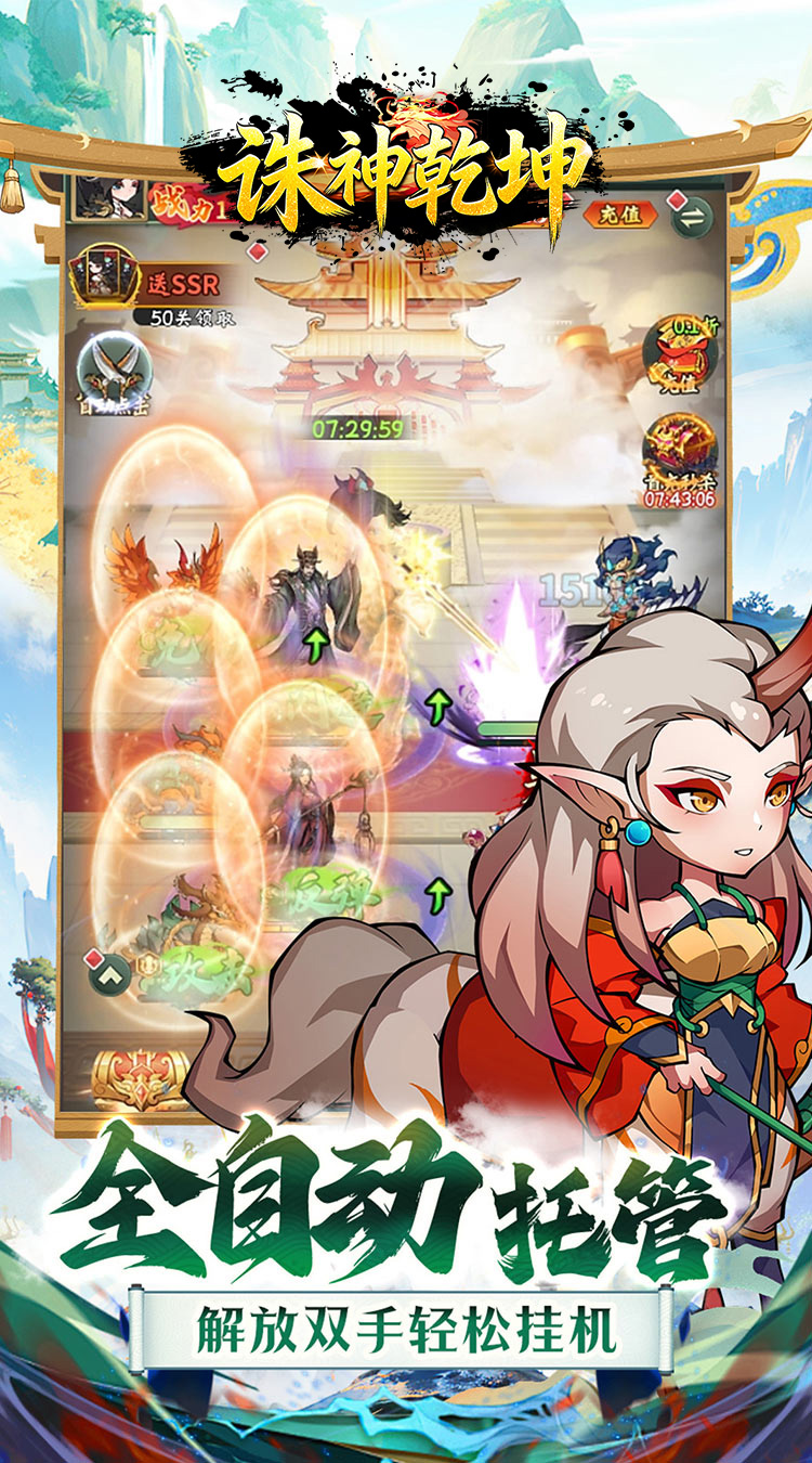 重温经典,共赴山海《诛神乾坤》是一款高度还原山海经的咸鱼放置卡牌游戏。游戏中可以收集到众多的奇珍异宝和山海神兽,玩法轻松休闲福利全面升级,还有超多免费充值燃情助力。革新融合多重PVE、PVP玩法和趣味养成路线,全自动托管让游戏变得更为简单,即刻开启全新山海旅程!