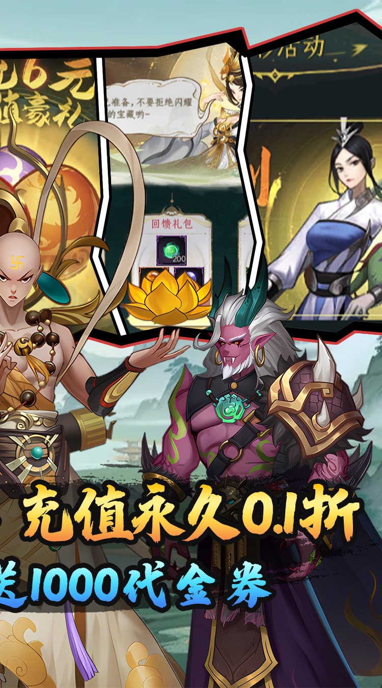 ★全场充值0.1折扣,充值比例1:10 ★全新专属代金券赠送,每日礼包领取1000代金券 ★千抽、顶级角色、免费礼包全部送 ★全新福利版本,线下领取648代金券