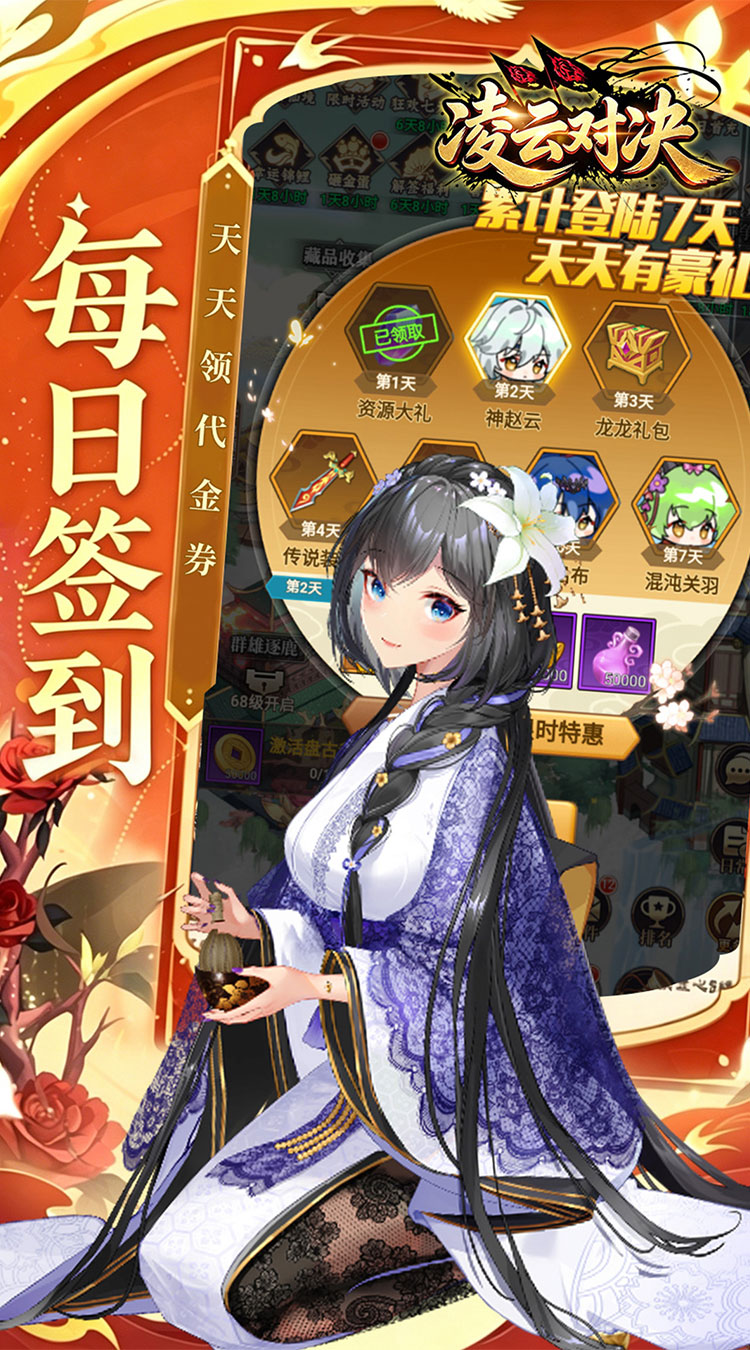 ★新版三国,登录送神武将!! ★每日签到,每日免费领取1000代价券!! ★连续登录,魔吕布、混沌关羽免费拿!! ★群雄逐鹿,征战天下!!