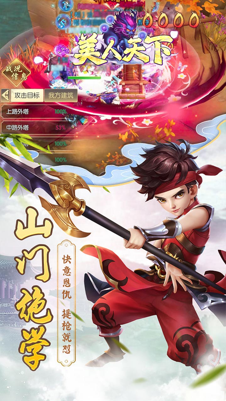 美人天下(全场永久0.1折)是一款Q版回合制游戏。开局就送VIP10、橙宠·吸血鬼王、神魔令牌*100、元宝*100万、银两*1000万!主线任务无限获取抽奖券,通章免费领取直充卡!精美2D的Q版人物设计,搭配传统神话故事剧情,实力打造精品回合制经典!酷炫坐骑共同潇洒三界,独有万千道具自由回收,多样经典回合玩法无穷乐趣!