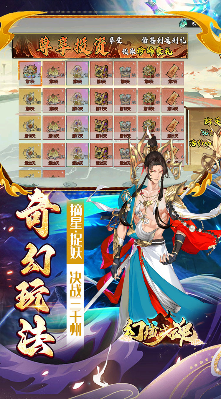 【永久0.05折】永久0.05折,真实一口价,福利更多; 【创角送礼】VIP经验,神将【哪吒】,限定装扮等; 【签到送充】七日签到领千元真充红包,每日上线直送6480代金券; 【代金返利】全新福利,累计充值每天都能领取超值代金券返利; 【满星神将】完成主线送毕业满星神将-丹江口话事人【杨戬】; 【千抽大奖】累计征战获取1000张召唤道具;