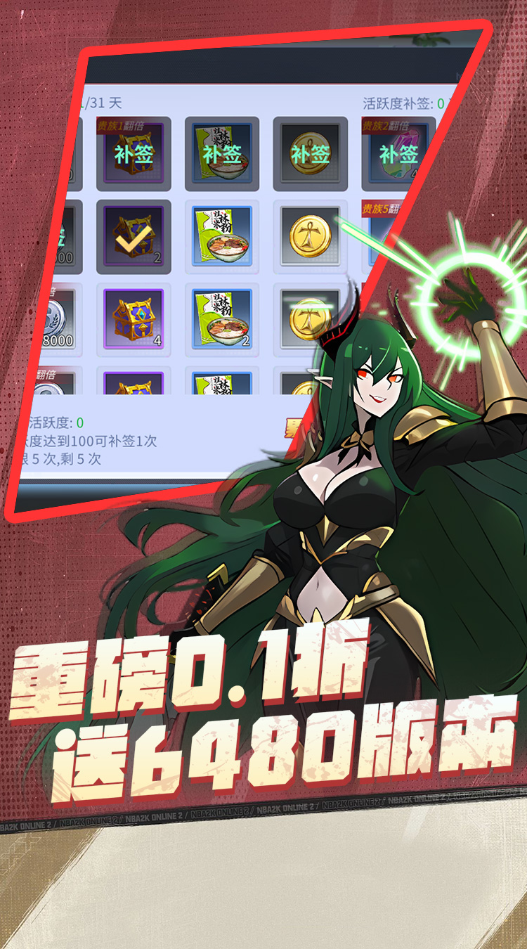 ★全场充值0.1折扣,充值比例1:10 ★礼包码领取专属64800豪华大礼 ★首充送+10史诗武器,登录送深渊票*999、远古票*999 ★超强福利,线下10元送绝版称号,98元送时装,200元送全身时装