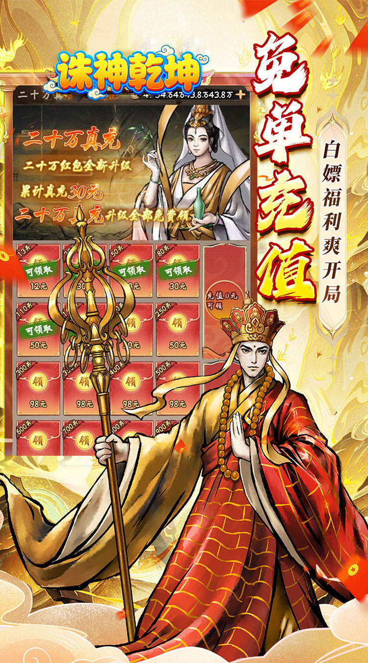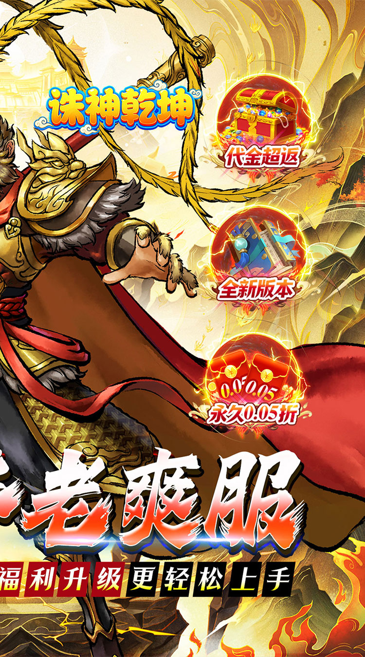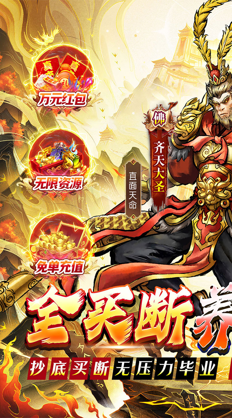 上线福利: ★福利①:充值比例1:10,游戏充值永久0.05折,轻松畅玩 ★福利②:登录送代金券,超多充值免费领取; ★福利③:每日签到送代充券,爆爽开局轻松爽玩; ★福利④:充值红包畅爽领,福利升级不肝不氪; ★福利⑤:通关主线免费千抽,顶级红将任选; ★福利⑥:趣味西游,即休闲又养生,西天取经,过关斩将;