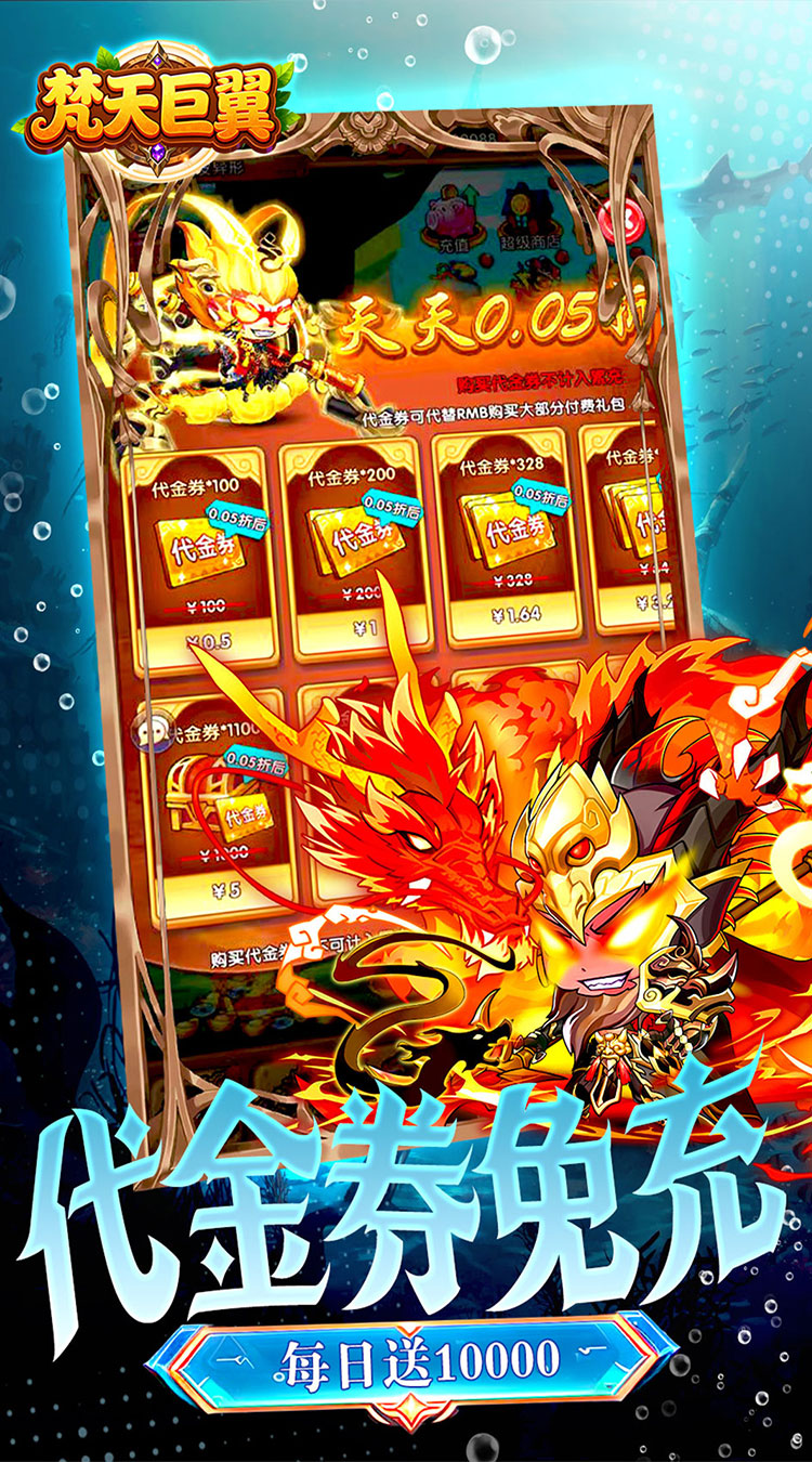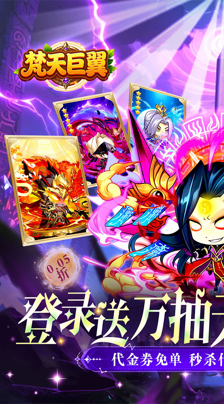 《梵天巨翼》是一款Q版国风题材的卡牌 塔防回合制游戏。你将化身主公,带领英雄们征战天下!烧脑策略秀操作,每个武将也都各具特色,趣味的玩法,休闲的画风,简单的操作,原创“满屏技能释放”,带来燃尽十足的战斗快感,每日福利拉满,永久0.05折,天天送10000代金券,让战斗在你的指尖生动重现。