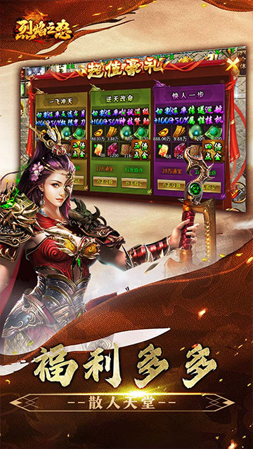 1.上千件专属,各类属性,自由搭配,爆率超高,爽的一批! 2.游戏【礼包】都可以打到,真正做到位散人着想的一款绿色游戏! 3.超多福利,打到手软,超多BOSS等你来挑战! 4.地图超多,海量道具,自由兑换,从不缺惊喜!