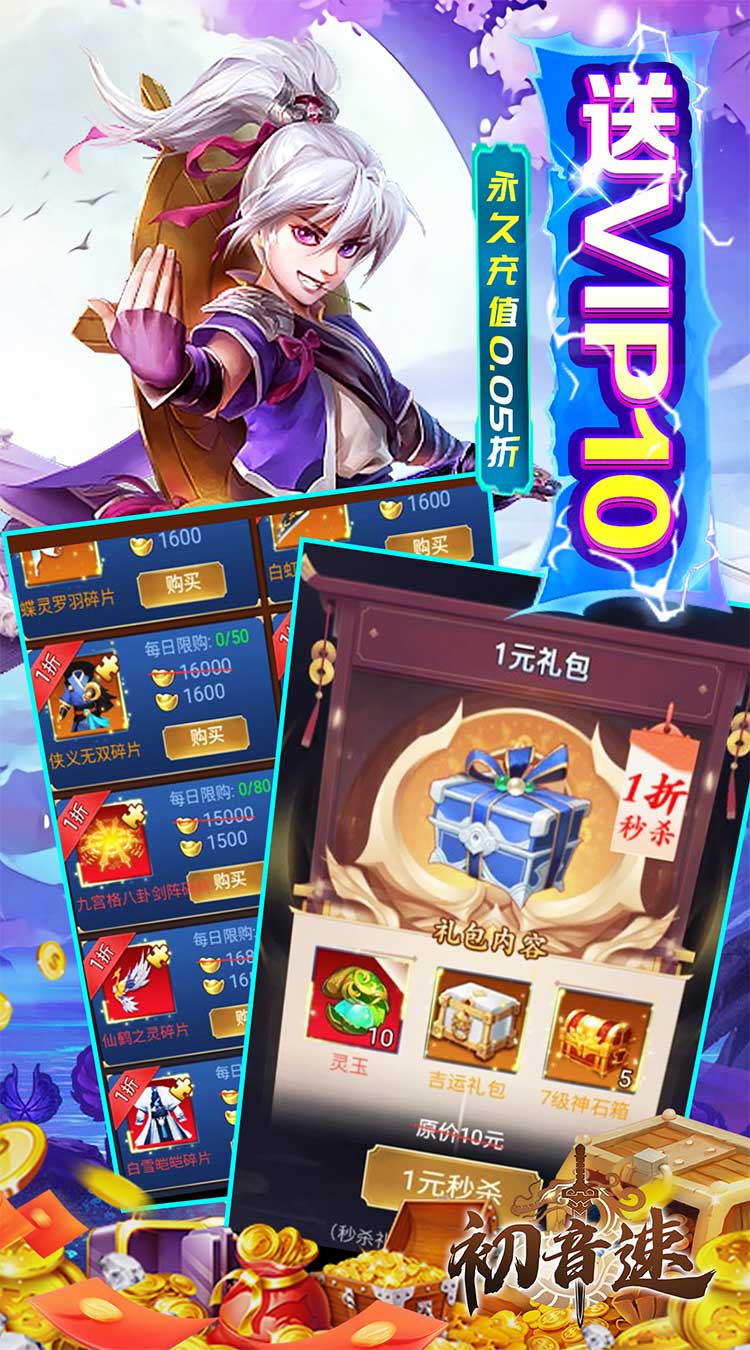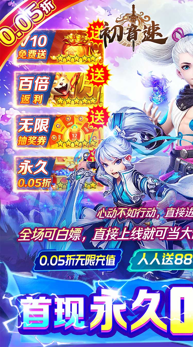 这是一款以九州世界为题材的放置挂机游戏,游戏内所有充值档位通通0.05折,轻轻松松霸服当大佬。全新版本开局就送V10 88888元宝,签到送元宝,激活月卡还能双倍领取,登陆送无限装备抽奖,0元礼包海量送,百倍返利爽翻天!游戏中还有多种玩法,经典的副本玩法,挑战成功道具领到手软!挑战首领,各路仙侠万人同台竞技!加入帮派与至交好友一览仙侠,战斗路上不再孤单!