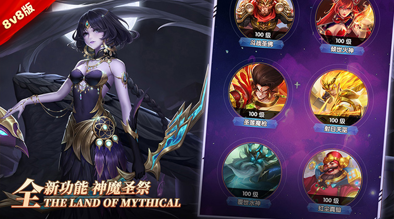 ☆全新8v8版本 福利重磅升级☆ 1、物价完全无改动,10000元代金券天天免费送! 2、上线即享返利特权,完成七日活动送核心神魔与海量钻石! 3、8v8正式启动,神魔圣祭降临,巨额折扣每日刷新! 4、凡人界晋升送神魔 神装,地灵界晋升送海量VIP经验与金色刻印石! 5、真一键升级,真轻松游戏,羁绊连环,策略拉满,快来组成你的神话小队吧~