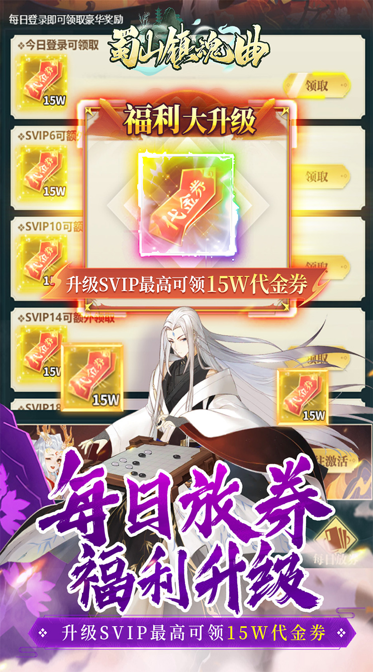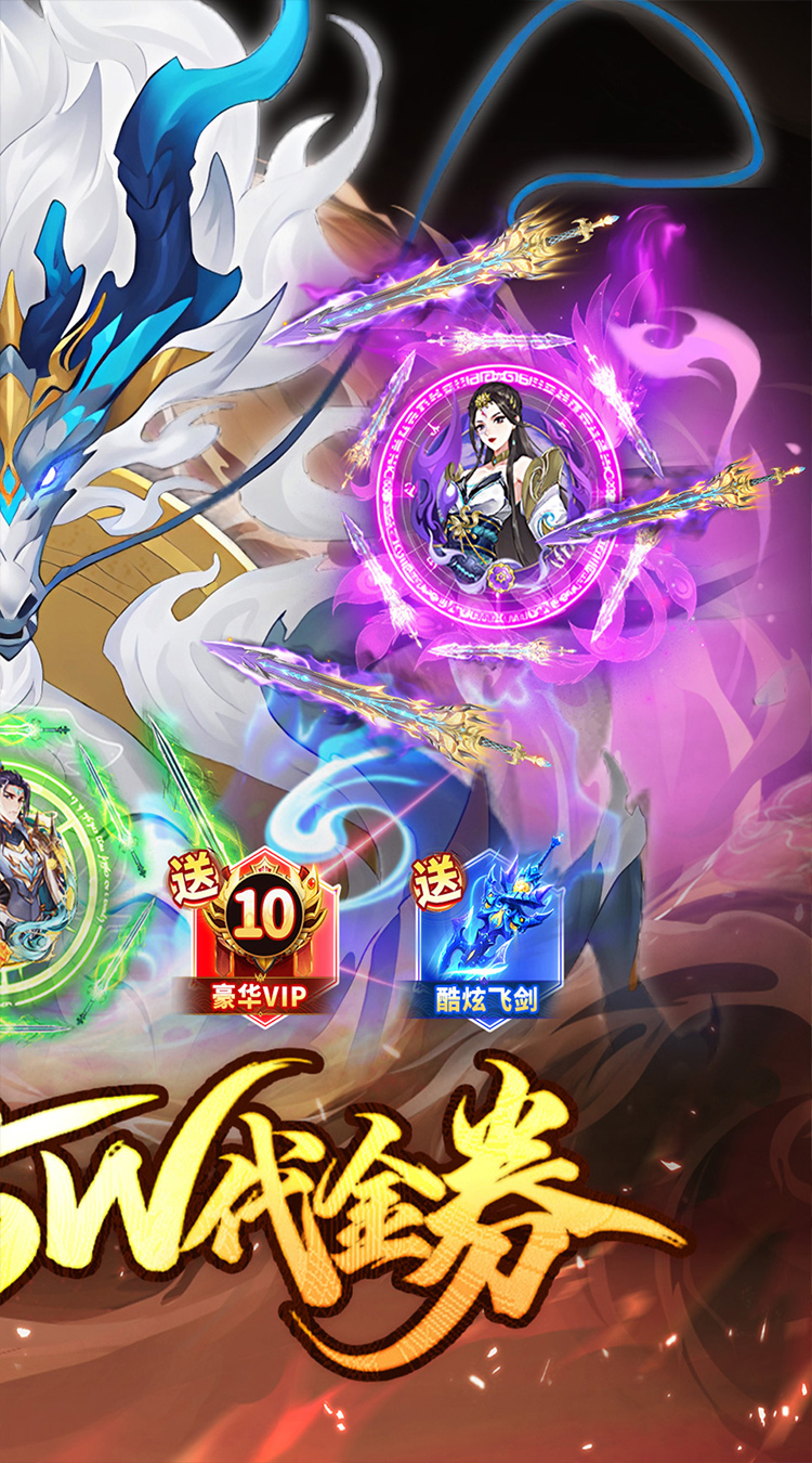 1、拒绝数值膨胀,首续充值永久享受0.1折优惠; 2、买断版:天天游戏内无门槛领取不限时代金劵*10000,达到指定SVIP等级后每天最多可以领取代金劵*42000 3、快人一步,仅需0.98元直升200级; 4、创角即送元宝*8888,金币*100万,飞剑太白*1、时装甘遂*1; 5、连续登录天天送绝版道具,次日超萌灵宠时装、三日红色法阵外观、七日极品红色飞剑; 6、每日签到即可领取稀有珍惜材料,百万铜币,上千真充卡 7、挂机送元宝,打boss掉真充卡,超高爆率,装备全靠打,不花钱也没轻松神装毕业;