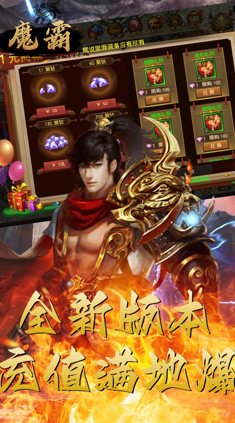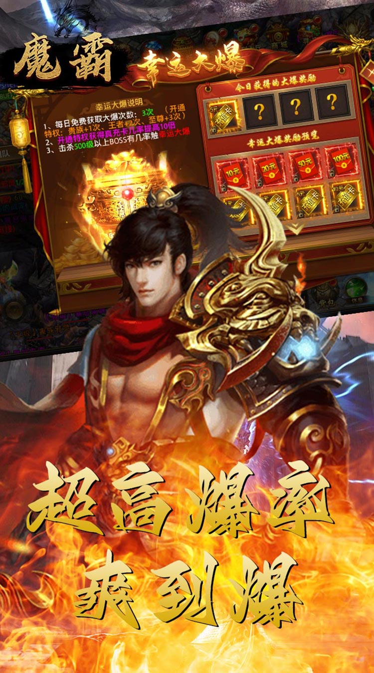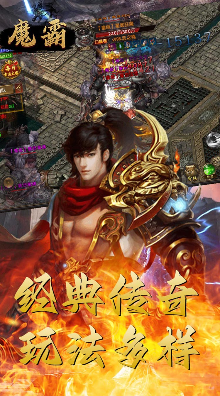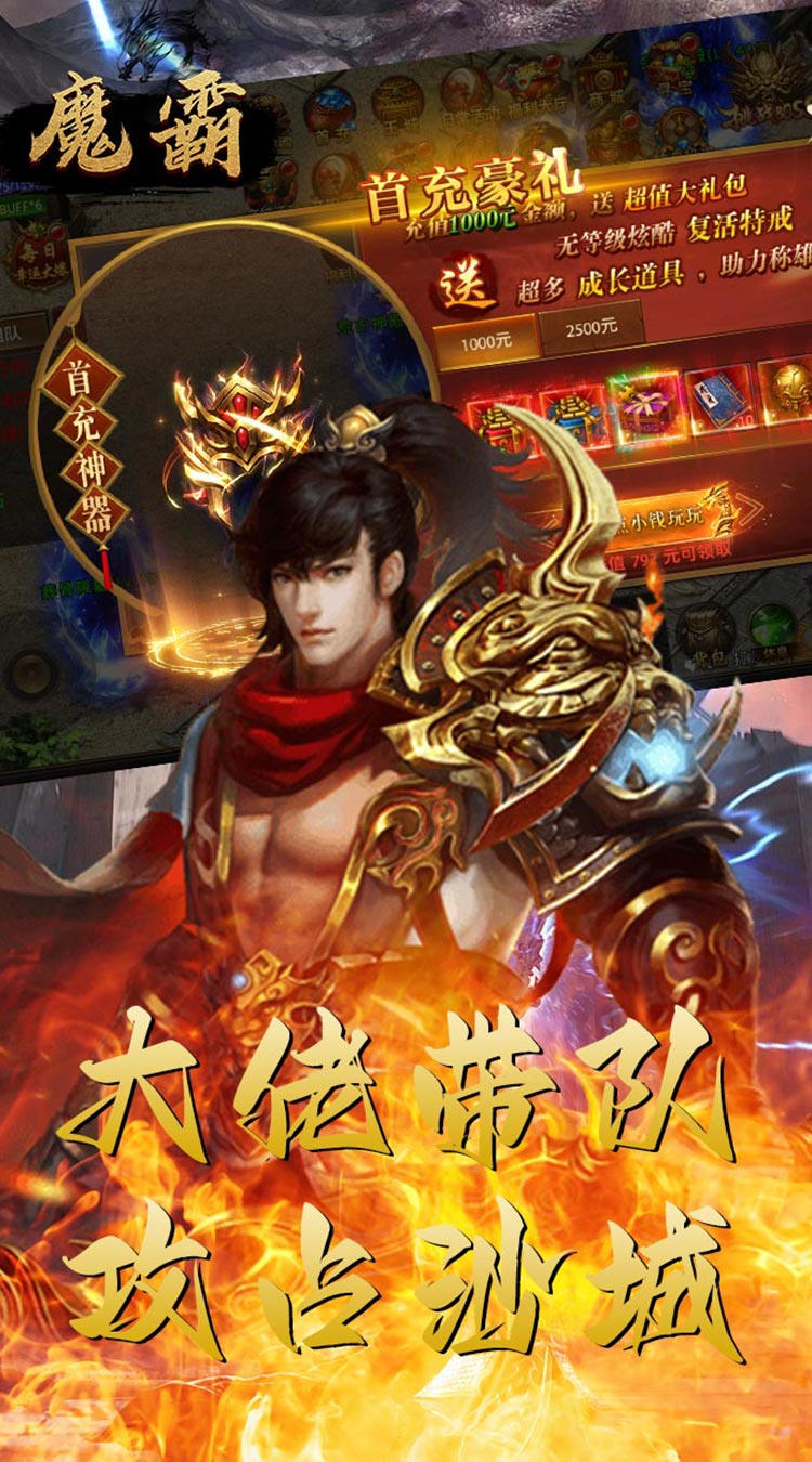 魔霸(热血沙城)是一款全新的动作冒险类传奇游戏!主要以升级、爆装备、攻沙、跨服远征为核心,丰富多样的玩法,华丽炫酷的时装特效,高清画质极致视觉盛宴。击杀BOSS可触发超级幸运红包大爆充值卡,免费直升满级VIP,闯关专属地图爆守护神装。还有每日跨服屠魔免费抽神壕套装!超高怪物爆率,元宝神器战装爆满屏,让你轻松刷怪,惊喜不断。怪物攻城、阵营战、沙城争霸、跨服远征、福利转盘、幸运翻牌等线上活动精彩不断。更有冠名专属、定制称号助你叱咤风云,威名远扬!战宠神威,唯吾独尊!热血狂爆,一战封神!