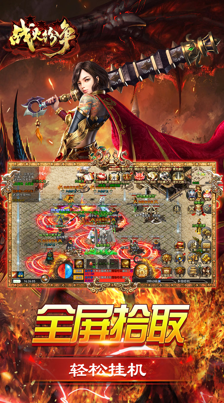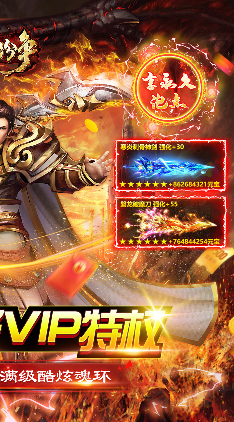 经典传奇,VIP送满!1秒下载,上线就送!上线输入礼包码LV888即可领取满级VIP!领完满级VIP更可免费获得满级魂环,打怪飞快!自动挂机、自动拾取,自动回收统统白送!激情PK、跨服对战活动不停,更有海量福利等你领取!