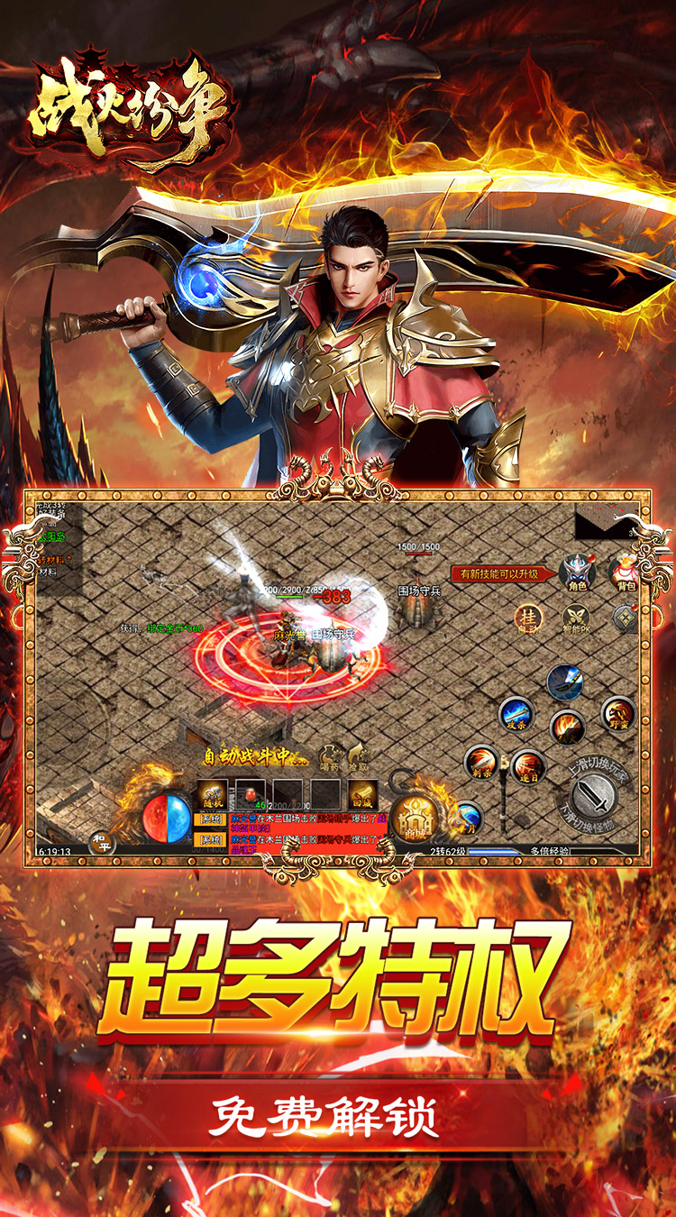 ★开服即领满V满魂环,超多特权超炫外观一同享有 ★首充赠送吸血神兵,切割时装,起步快人一步 ★首杀首爆奖励丰沃,角色养成超省心 ★活动满满奖励多多,全天游戏更加充实 ★一键挂机,全屏拾取,轻松安逸好不自在