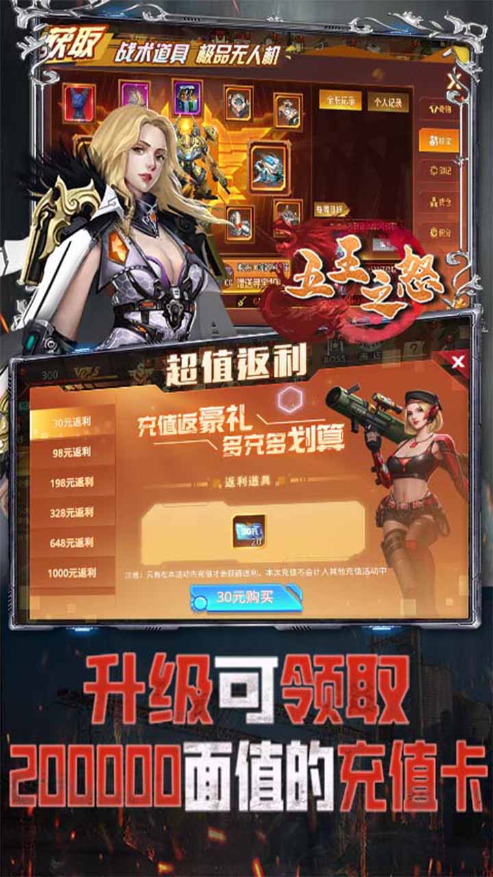 1、上线新手副本后送648充值卡10张! 2、升级可领取200000面值的充值卡! 3、充值30元以上返利21倍现金卡。