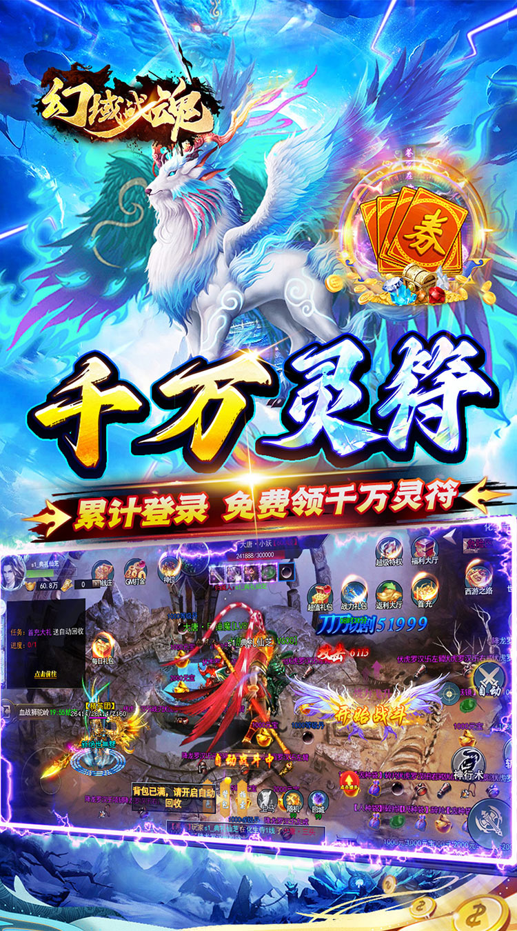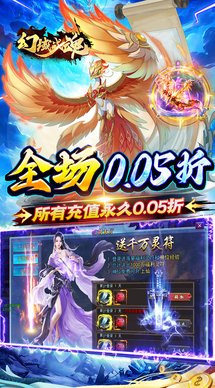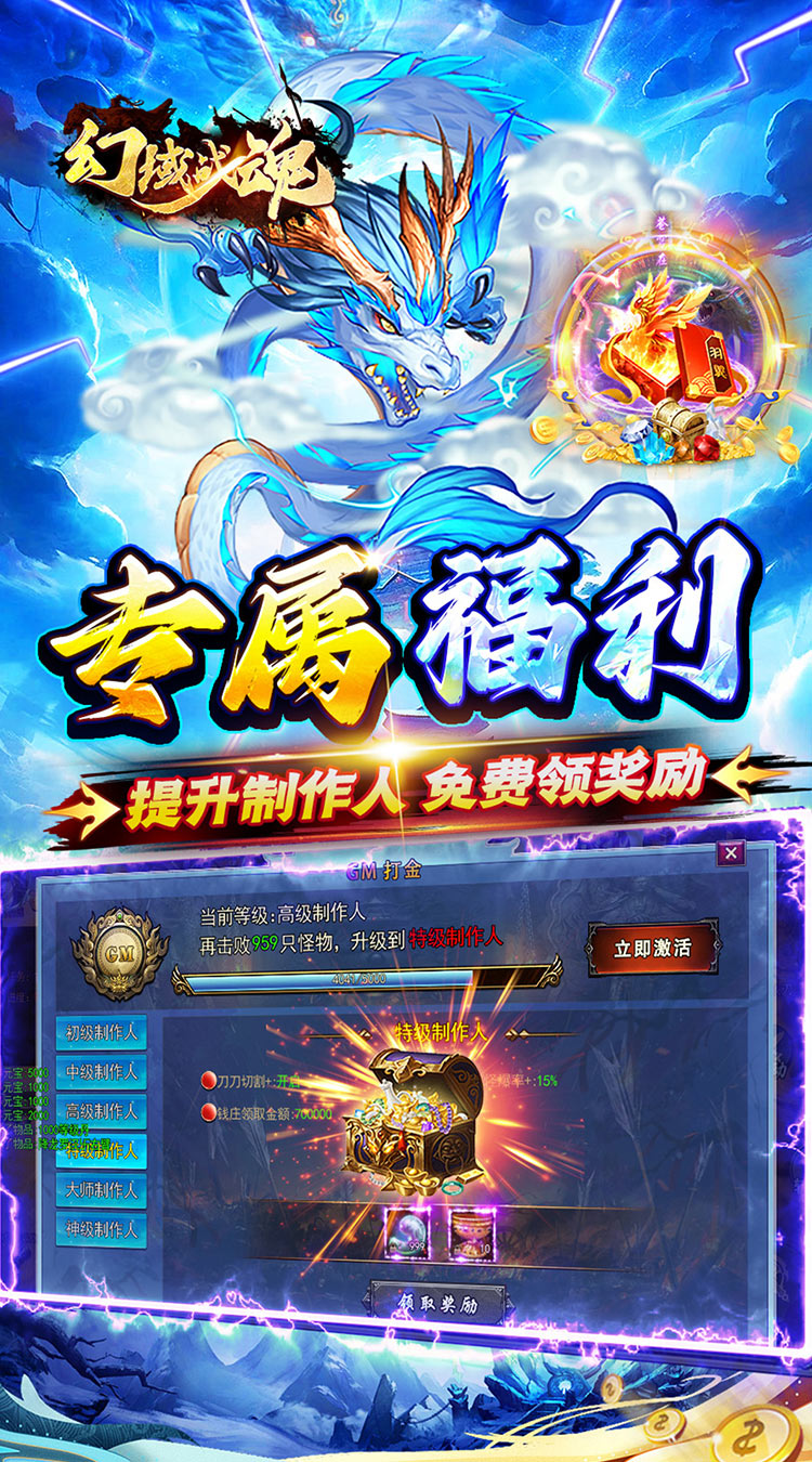 ★游戏永久充值0.0.05折福利,不限量不膨胀 ★GM打金免费提升等级,免费领取大量奖励 ★连续每日登录,领取千万灵符 ★GM钱庄免费提示奖励,大量元宝等你领取