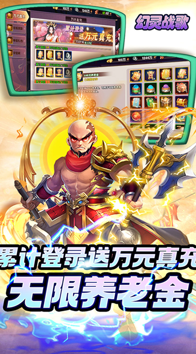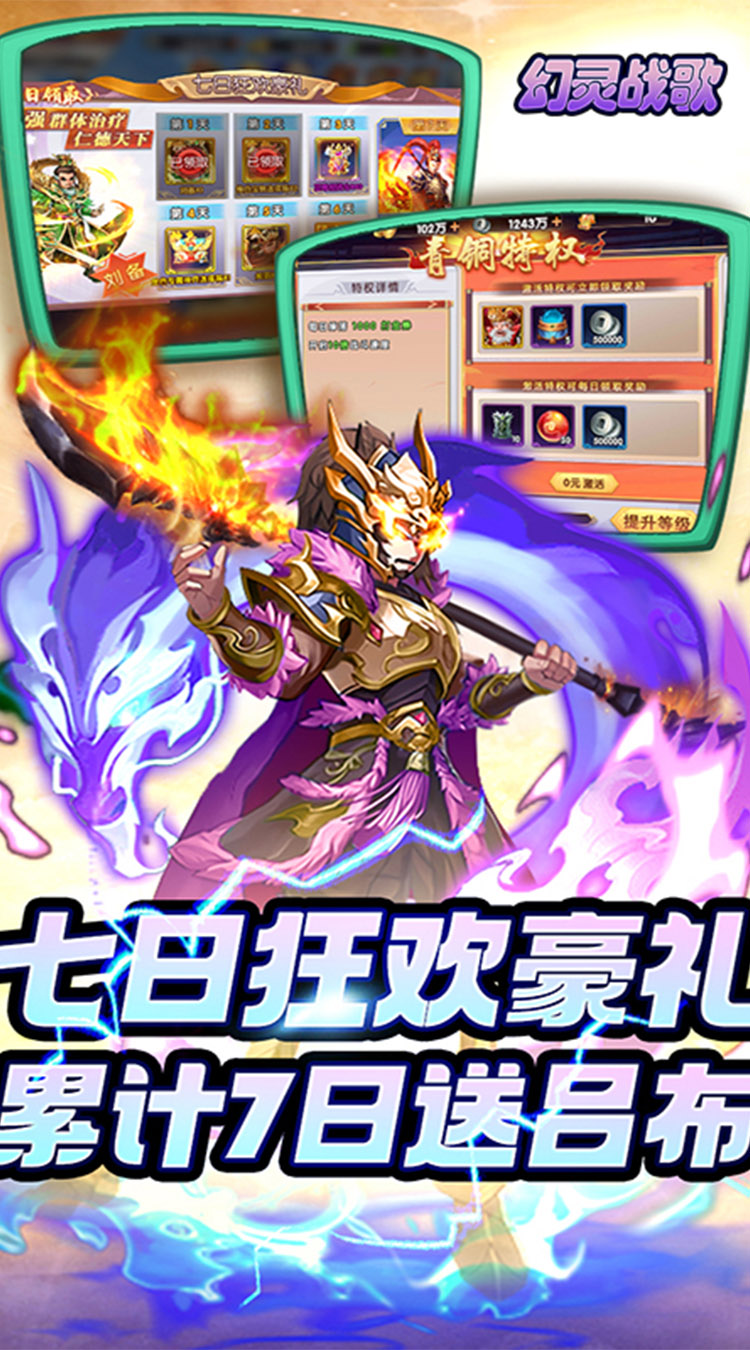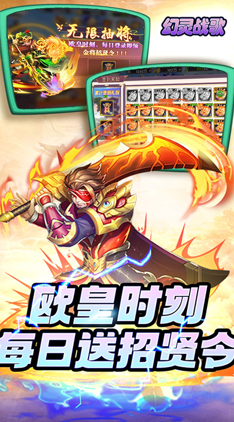 全新三国题材卡牌《幻灵战歌》买断版本,增加神魔角色英雄卡牌,炫酷一批,进游送万元代金券,累积充值98元送顶级武将彩金吕布;328元送满星吕布+满星神关羽,648送满编制彩金战队,全员满星精妙绝伦的立绘,酷炫霸气的技能。带你走进一个不一样的乱世三国,领略其中风采,在游戏中收集招募名将,培养名将为自己战斗!