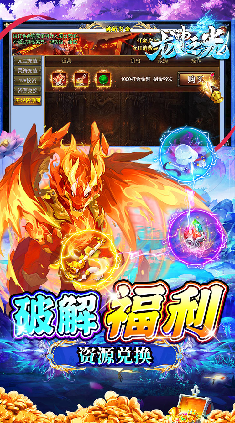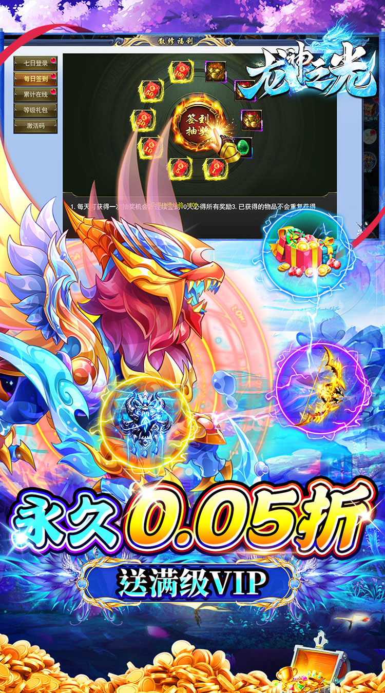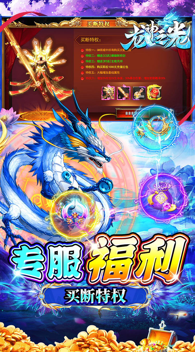 ★首充比例1:1000,游戏充值永久0.05折,不限量不膨胀! ★登录游戏免费送满级VIP,千元红包,打金钻,超值时装! ★游戏特权工具,买断特权,超多资源等你来拿! ★爆真充红包,一日暴富不是梦!