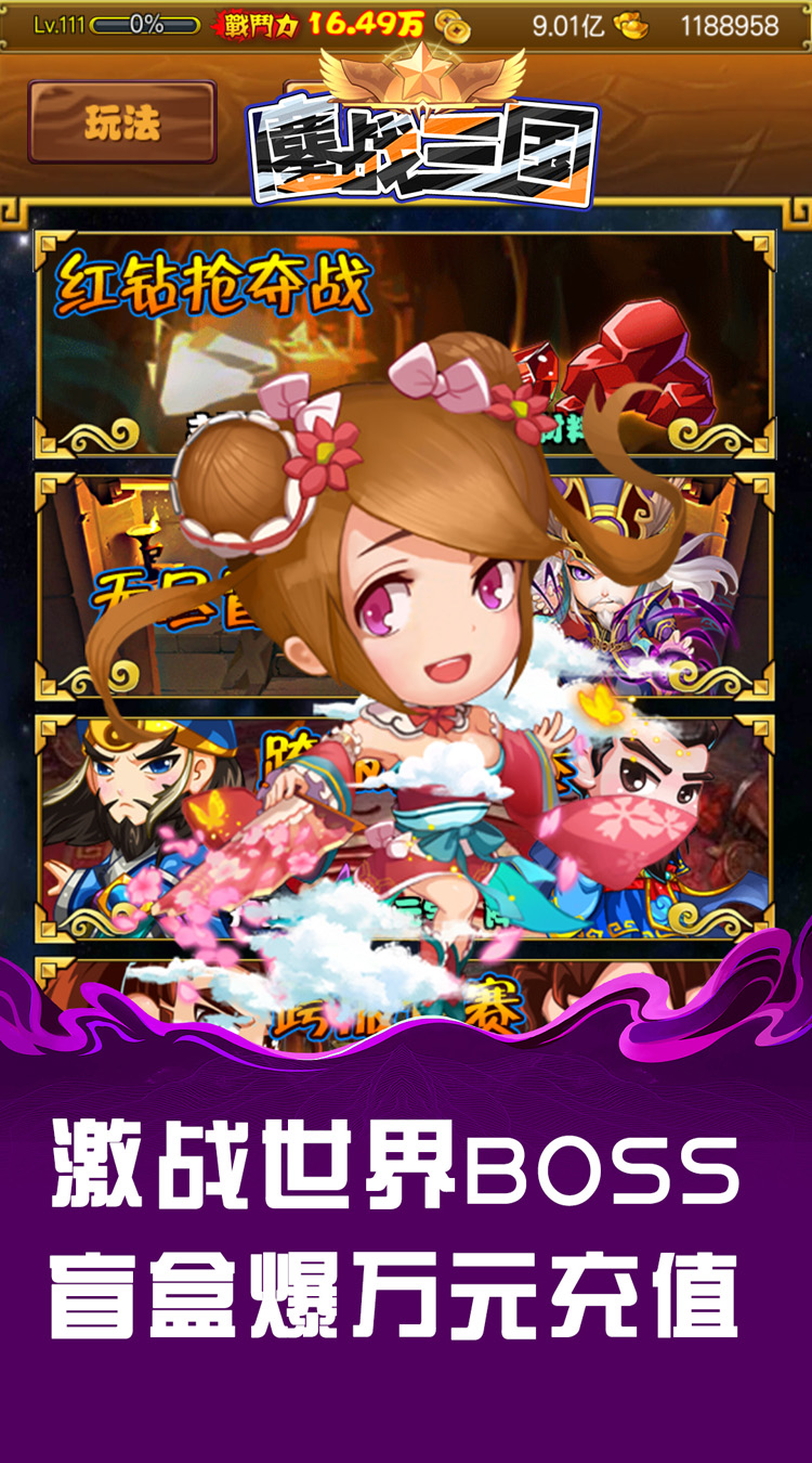 三国萌将集结,开启热血策略征程!Q萌卡通画风重塑经典武将,收集养成随心搭配专属阵容。多元战术自由施展,强攻、防守、奇袭任你排兵布阵,在智谋博弈中击溃敌军。超高清画质搭配炫酷技能特效,打造沉浸式战斗体验。卡牌养成与策略对战深度融合,助你组建无敌军团。登录即送强力武将,丰厚福利与趣味玩法等你解锁,即刻出征,向着天下第一的目标进发!