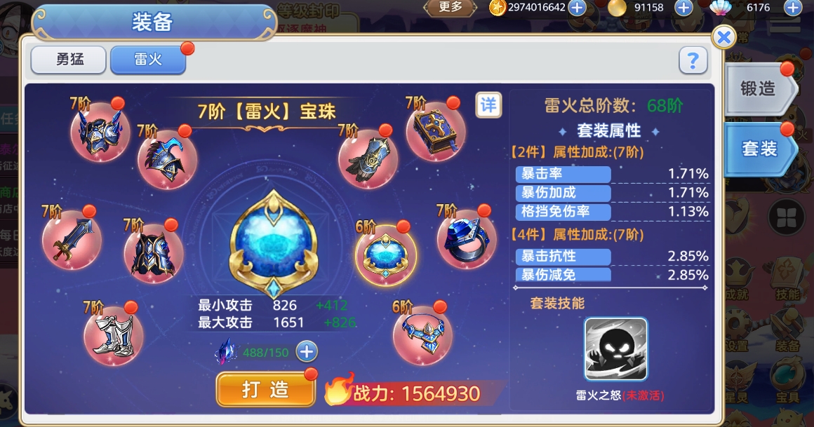 TIPS:一阶雷火套装需求的雷火石较少,且属性加成不错,每一件的打造只需雷火石*5,在拍卖行中可以通过底价300珍珠购得,因此前期可以优先打造这一套哦。