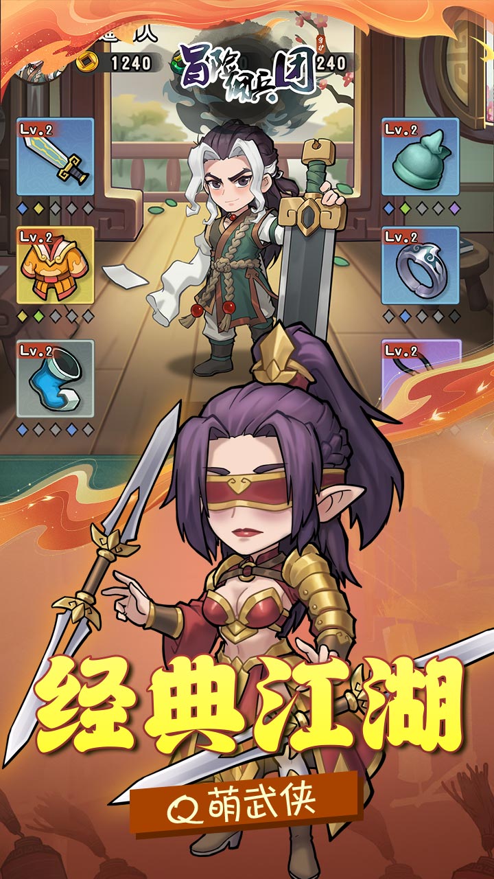 《冒险佣兵团》是一款武侠题材的塔防手游,结合Roguelike元素与策略养成玩法,游戏设定在武侠背景下,玩家扮演各侠客对抗怪物进攻,核心玩法为‌放置Rogue塔防‌:局内通过随机技能组合构筑战斗策略,局外强化角色等级与功法等数值,形成循环成长体系。战斗采用2D俯视角,操作简化但策略深度强,支持碎片化游玩。‌‌