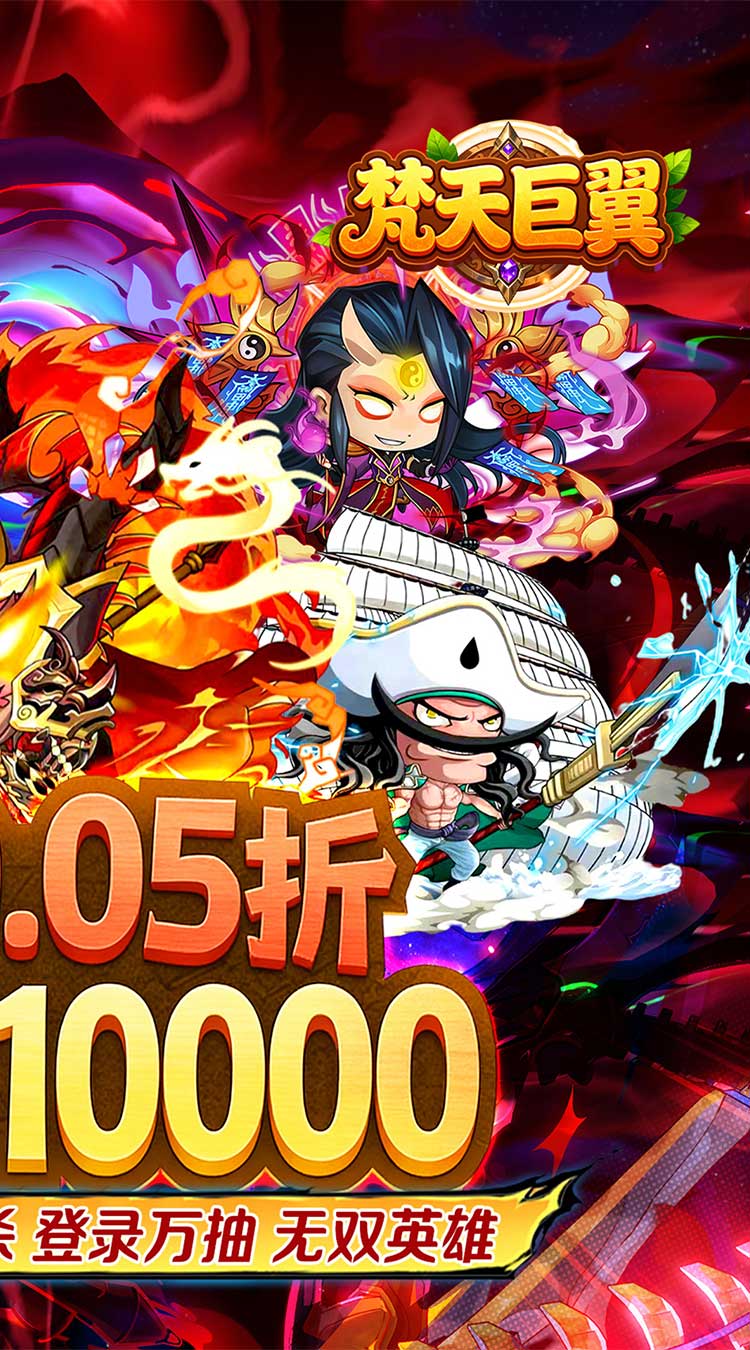 《梵天巨翼》是一款Q版国风题材的卡牌 塔防回合制游戏。你将化身主公,带领英雄们征战天下!烧脑策略秀操作,每个武将也都各具特色,趣味的玩法,休闲的画风,简单的操作,原创“满屏技能释放”,带来燃尽十足的战斗快感,每日福利拉满,永久0.05折,天天送10000代金券,让战斗在你的指尖生动重现。