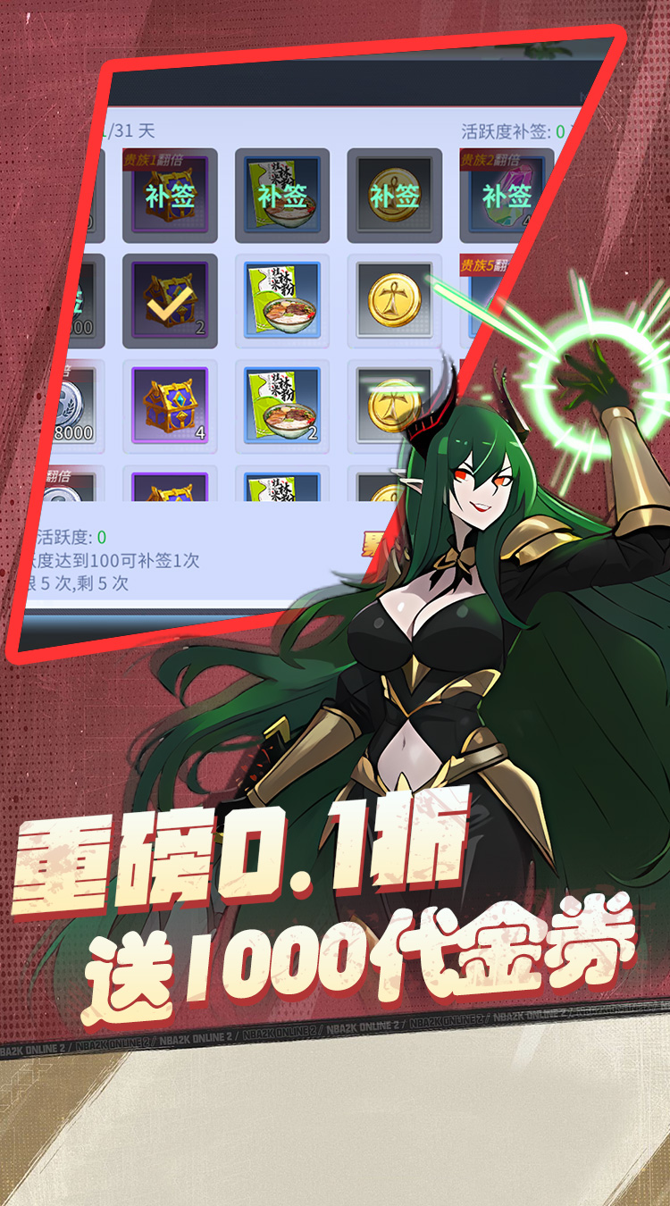 ★全场充值0.1折扣,充值比例1:10 ★礼包码领取专属1000代金券豪华大礼 ★首充送 10史诗武器,登录送深渊票*999、远古票*999 ★超强福利,线下10元送绝版称号,98元送时装,200元送全身时装