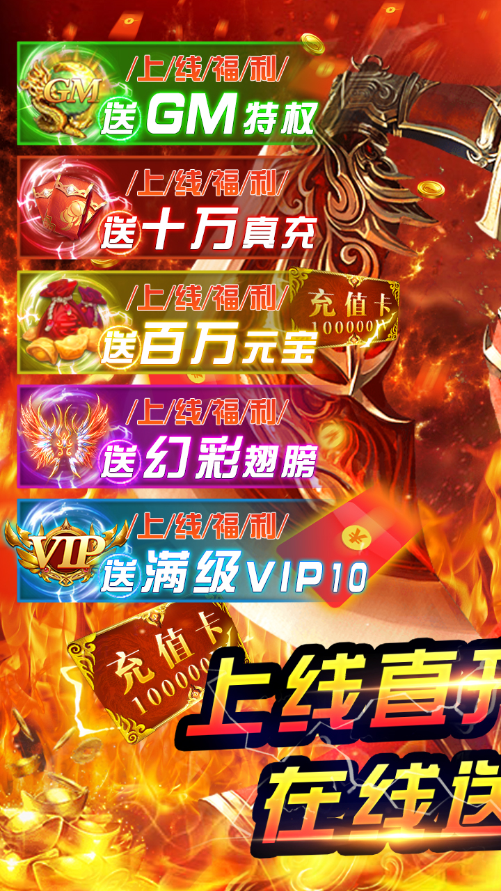 上线就送VIP10,68000古玉,500W绑金,天选之人(绝版称号),在线送10W充值卡,当天就可以使用,激活指定运营活动,上线送兰博基尼(体验),实现跑车自由,这么好的服,不来玩玩吗?没有策划也可以自己暗改数值,多少爆率你说了算,只需要体验2分钟,你就会跟我一样,爱上这个游戏。