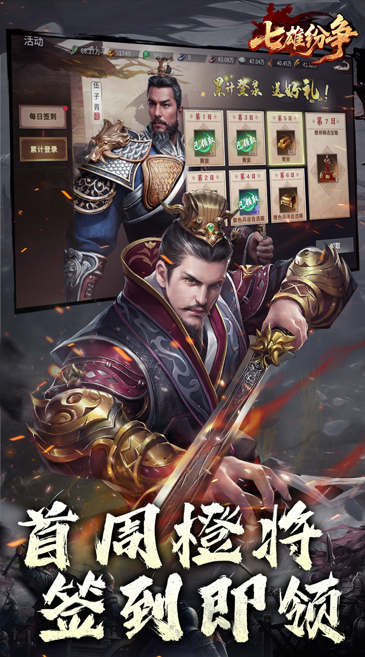 、登录就送女将钟无艳,超强群体控制,越战越勇。 2、每日登录、提升等级领破万黄金。 3、七日登录豪礼,领超强橙将-伍子胥 4、首充可得四大美人之一,战场奶妈·西施 5、版图扩张随心扩,国家-联盟-玩家的社交立体结构,玩家争夺可改变世界版图