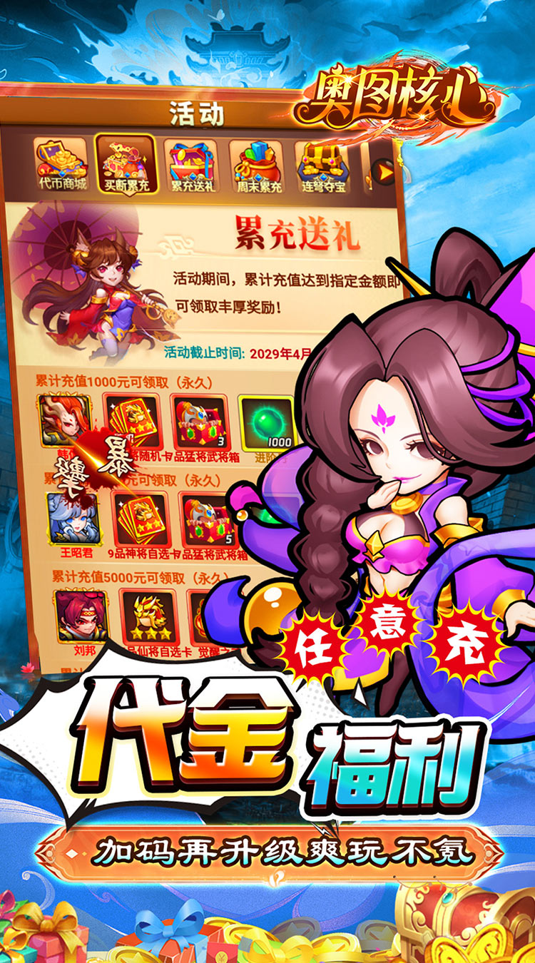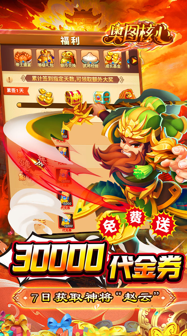 ★福利①:三国休闲挂机手游,开局即享0.05折充值; ★福利②:每日畅领30000代金卷,无限制,可充值一切活动; ★福利③:“7天好礼”十分钟升级豪领千抽; ★福利④:首充4倍元宝返利,领3天豪礼,送顶级武将“真·赵云”; ★福利⑤:自动推图,解放双手,休闲三国,摸鱼必配;