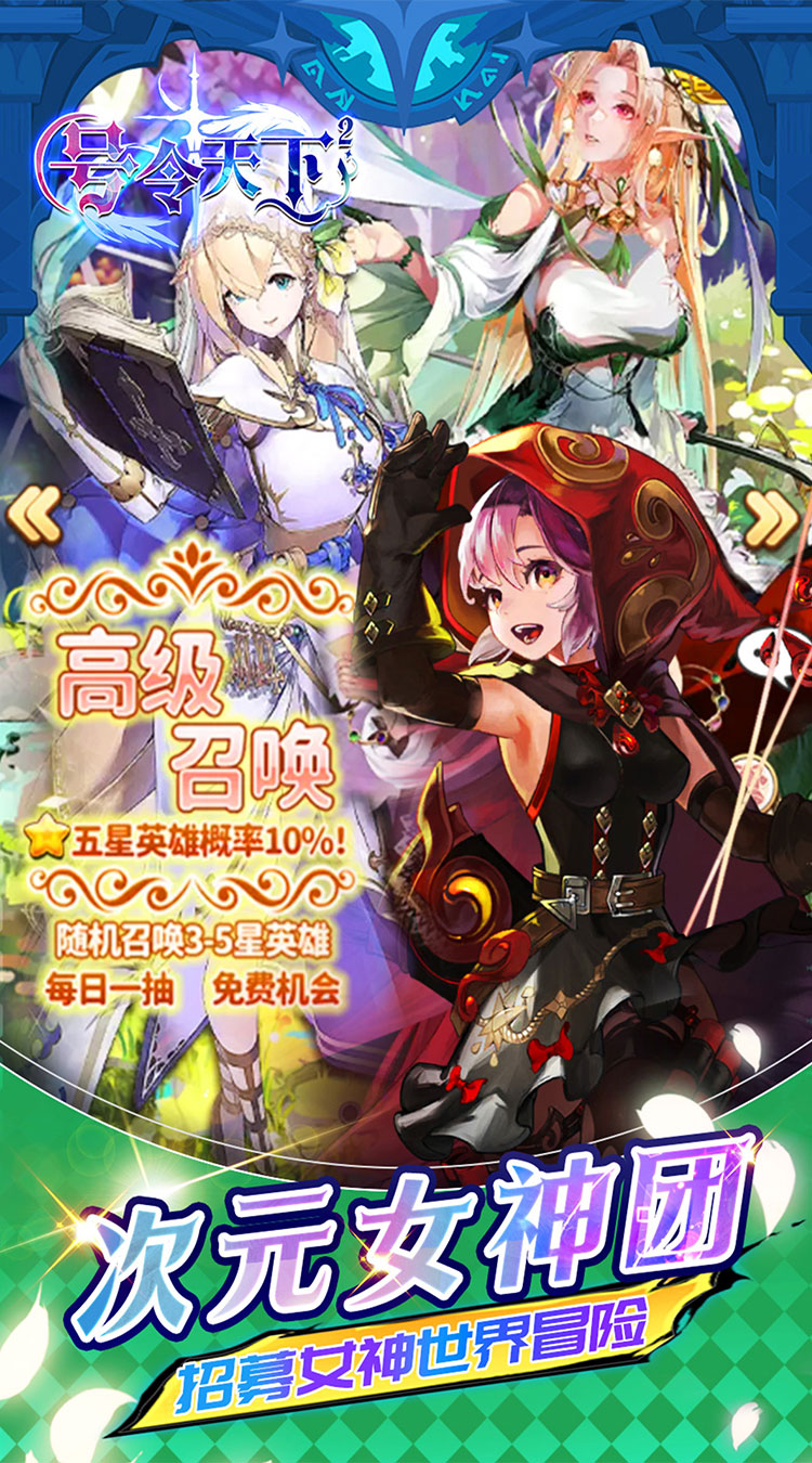 《号令天下2》是一款卡牌养成类二次元手游,在这个充满奇幻色彩的二次元世界里,众多不同类型的女神集结于英灵大陆,组成不同联盟阵营,呈现一场精彩绝伦的冒险之旅!高度自由收集养成,根据您的喜好发展游戏角色,释放您的游戏潜力,和不同的女神在奇妙冒险旅途中不断成长,创造属于你们游戏传奇。
