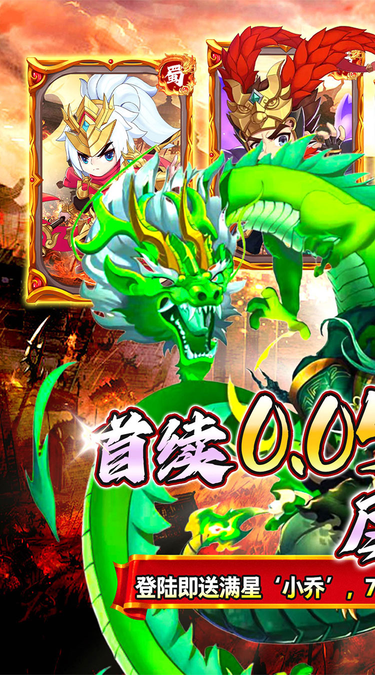 ★福利①:开局即享0.05折充值,群雄逐鹿,争霸三国! ★福利②:登陆即送VIP9,满星神将“小乔”,5星神装,百万经验,千抽道具; ★福利③:七日好礼,送魔吕布,混沌顶级神将“关羽”; ★福利④:白嫖代金,在日常任务以及月度签到中获取代金福利; ★福利⑤:召唤武将,排兵布阵,攻城掠地,热血三国,携手并进;