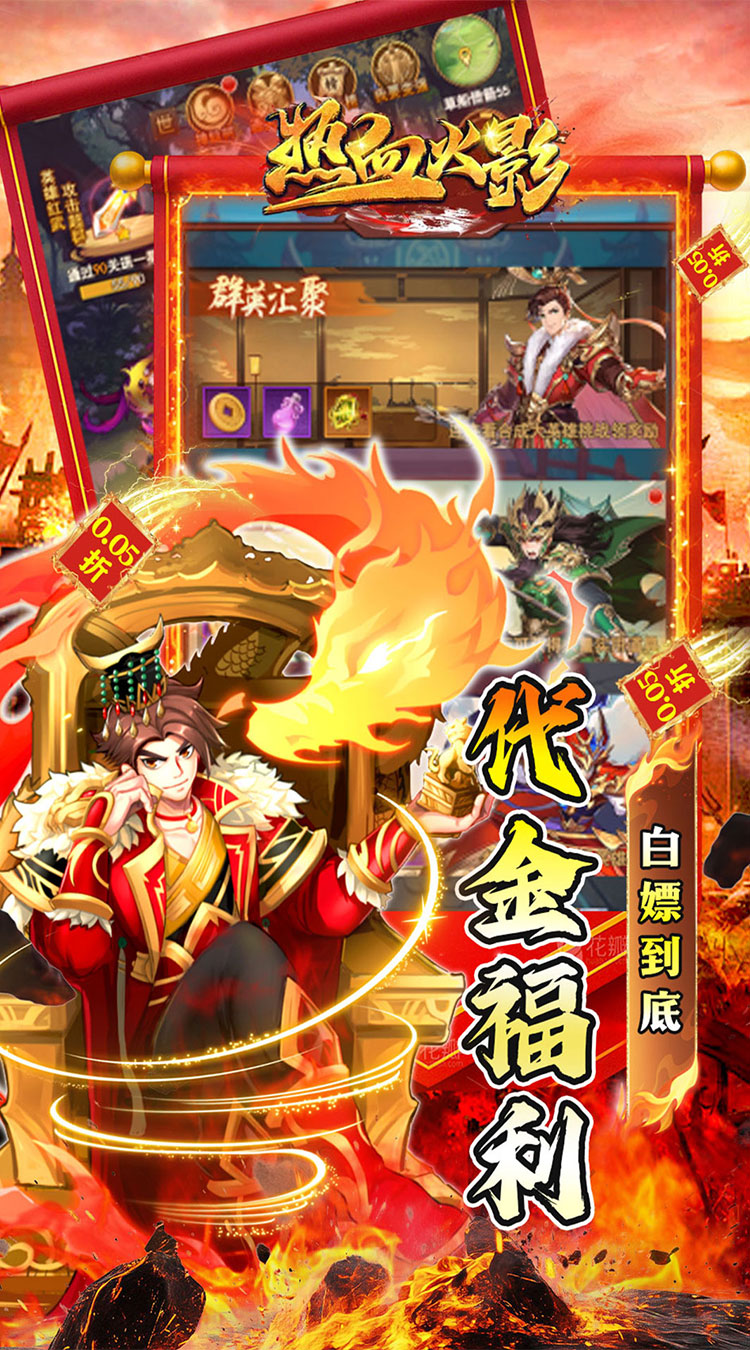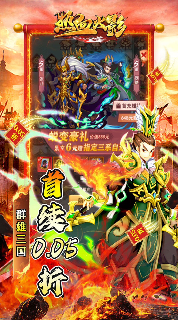 《热血火影》是一款全新三国题材策略卡牌手游,真实还原剧情,争霸天下,攻城掠阵,融入众多历史名城以及经典战役元素,超然万物的名将助您角逐三国之巅。0.05折的价格,每日获取代金券,更有海量福利,丰富活动,等主公您体验。畅享无双豪情~