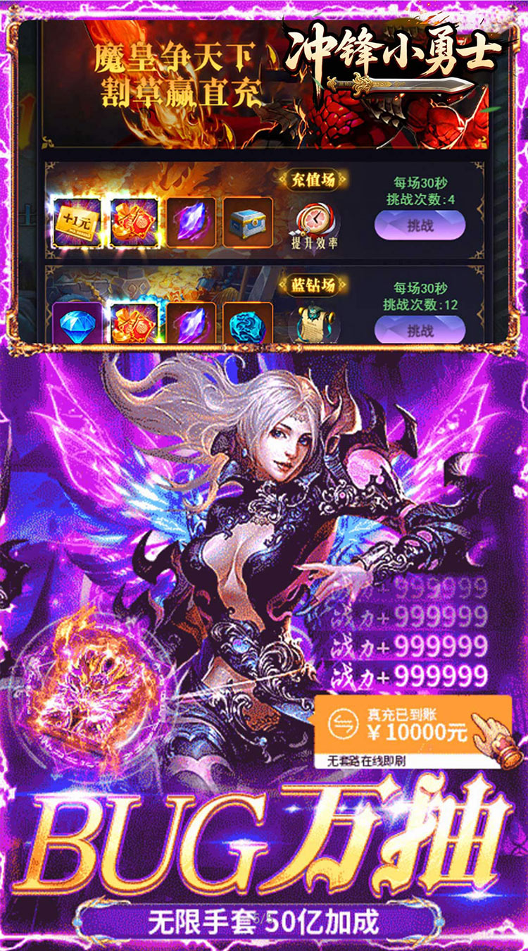 ★创角白送VIP14、万元真充礼包、真充卡碎片礼盒 ★在线送满V 1000W战力神秘幻化宝箱(大天使之剑) ★全场永久0.05折充值、2倍返利 ★任务白送10万真充红包 ★全新特色GM修改器,GM神装领到手软 ★无限资源无限领 ★白嫖首选割草达人,疯狂撸米