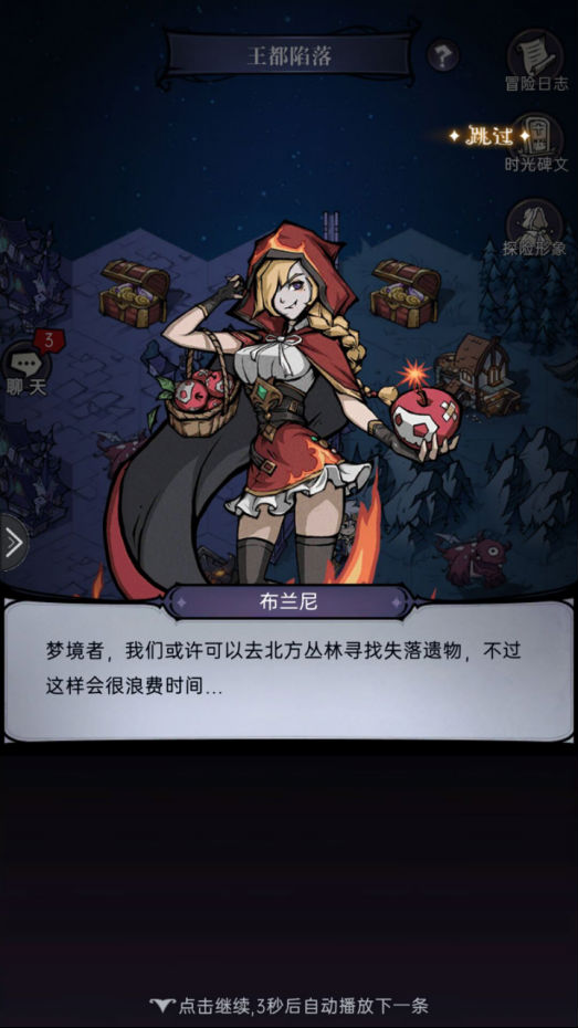 并且还有对话提示可以去北方(指地图右侧)寻找遗物,但会浪费时间