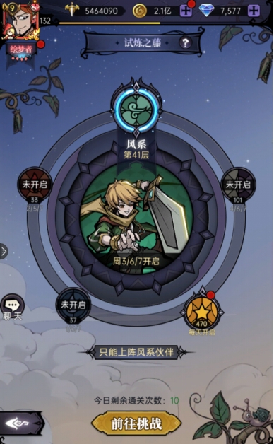 种族模式:只能上阵对应种族的伙伴,每种种族试炼每周开启3次,限制单日通关次数10次