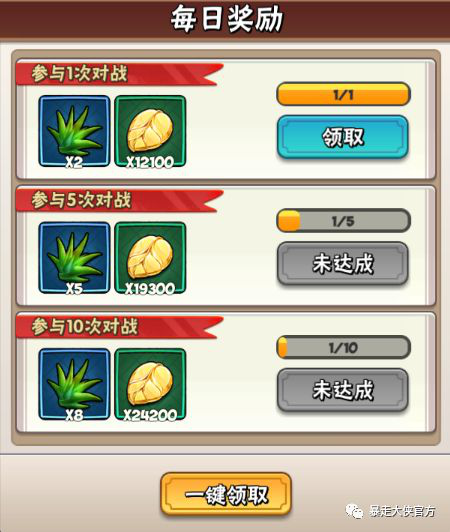 PVP模式中还为大侠准备了丰厚的奖励,每日进行一定数量的对局,就可以领取每日奖励。