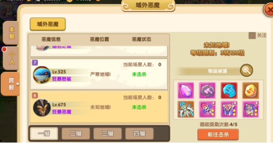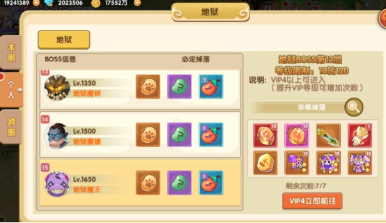 玩家每天有5次击杀BOSS的机会,每个boss都有等级限制,BOSS掉落物品十分丰富。