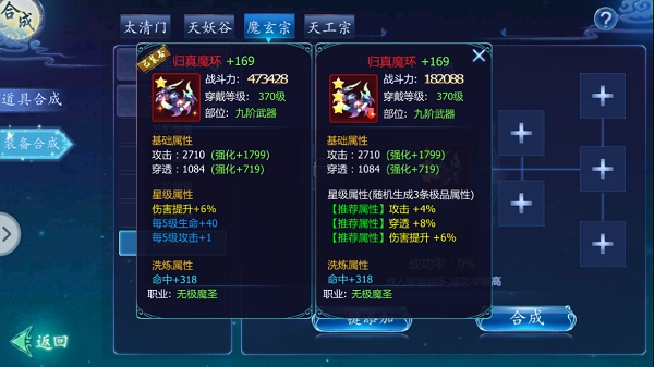 装备星级:装备星级越高,就会随机生成3条极品百分比属性加成,所有的二星红装和三星红装都可以被合成,相同组合的装备之间才可以相互合成,任何职业的装备都可以合成,但是材料只能是相同职业相同组合的装备,穿戴在身上的装备不会被用来合成,放入装备越多,成功率越高