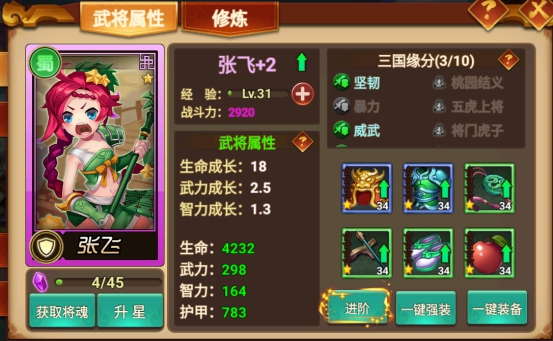 厉害的武将怎么少得了极品得装备呢?在三国副本中,想要获得像样的装备,那可少不了打公会副本。魏国副本中主要的产出公会奖章,蓝色或紫色品质的头盔;蜀国副本中主要产出经验丹,蓝色或紫色品质的武器;吴国副本中主要产出功勋,蓝色或紫色品质的鞋子;群雄副本中主要的产出金银铜宝箱和钥匙,蓝色或紫色品质的衣服~此外各国副本还可产出相应将魂,实在太给力了,感觉召唤小伙伴一起搞基打怪穿新衣吧~