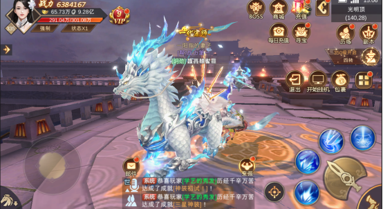 进阶线有:追风宝马,招财福猫,铁甲灵犀,翠竹熊猫,三尾白狐,吊尾毒蝎,百战狂狮,逍遥海马,铁血战狼,白玉麒麟(上图),七彩鸾凤,戏海白鲸12种进阶坐骑;通过消耗坐骑进阶丹进阶成功后获得外形,并且提升属性。