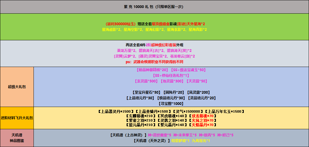 单日折后充值10000元(实付):【可申请“洪荒定制称号”一个】(限定8字以内)