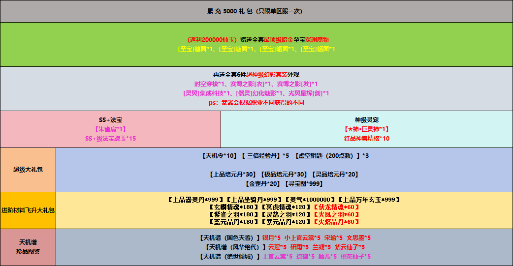 单日折后充值5000元(实付):【可申请“真元定制称号”一个】(限定6字以内)