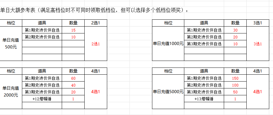 活动规则:单日大额累充,可额外申请稀有道具返利