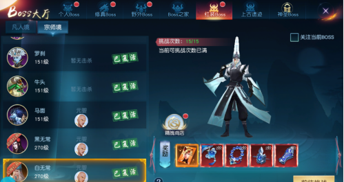 1. 共分为个人、修真、野外、boss之家、红装、上古遗迹、神圣等多种boss类型。