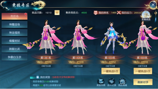 四、竞技玩法(竞技场、神魔战场、神龙福地、镇魔地狱、跨服比武、争霸白玉京)