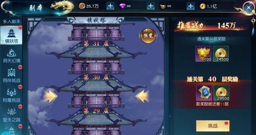 二、挑战玩法(镇妖塔、附魔挑战、同伴挑战、雷峰塔、洞天幻境、登天之路)