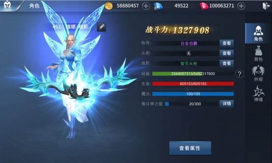 基础属性分为:称号、头衔、战阶、经验、生命、魔法、每日神力值。