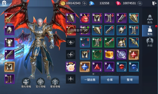 (1)翅膀成长:玩家需要消耗对应升级材料来提升翅膀的等级,已解锁更多强力的翅膀技能。
