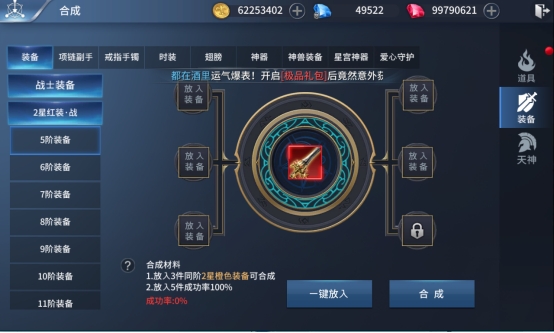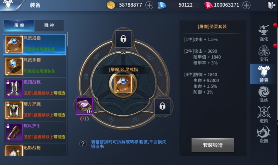 装备系统是提升角色战斗力最重要的系统。锻造系统中分强化、镶嵌、套装、洗炼4大功能。
