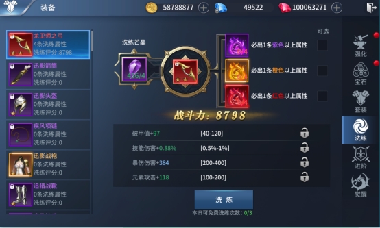 (4)、洗炼功能:洗炼功能可以提高装备的属性。精炼会消耗一定数量物品与游戏币。