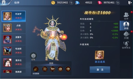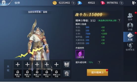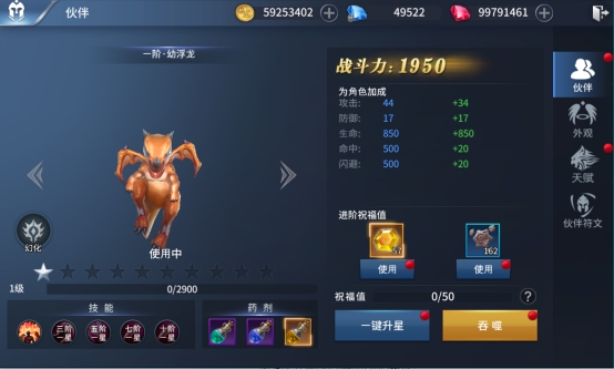 (1)伙伴:最基础的等级培养,伙伴等级提高后会进行,除了战力提高以外还有全新的造型。